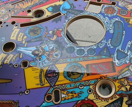 Here's an example of what we can do, showing before and after photos of a TOTAN playfield that needed some TLC: