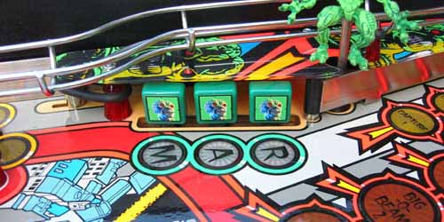 of cabinet, left and right of the playfield. Includes thin
